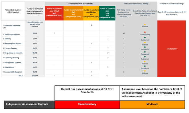 Organisations shall ensure that their chosen audit provider is aware of the mandated framework which needs to be followed. The hallmark of the methodology is an output which includes: a risk rating against each of the 10 data security standards; an overall risk rating (based on the 10 individual ratings); and an overall confidence rating.